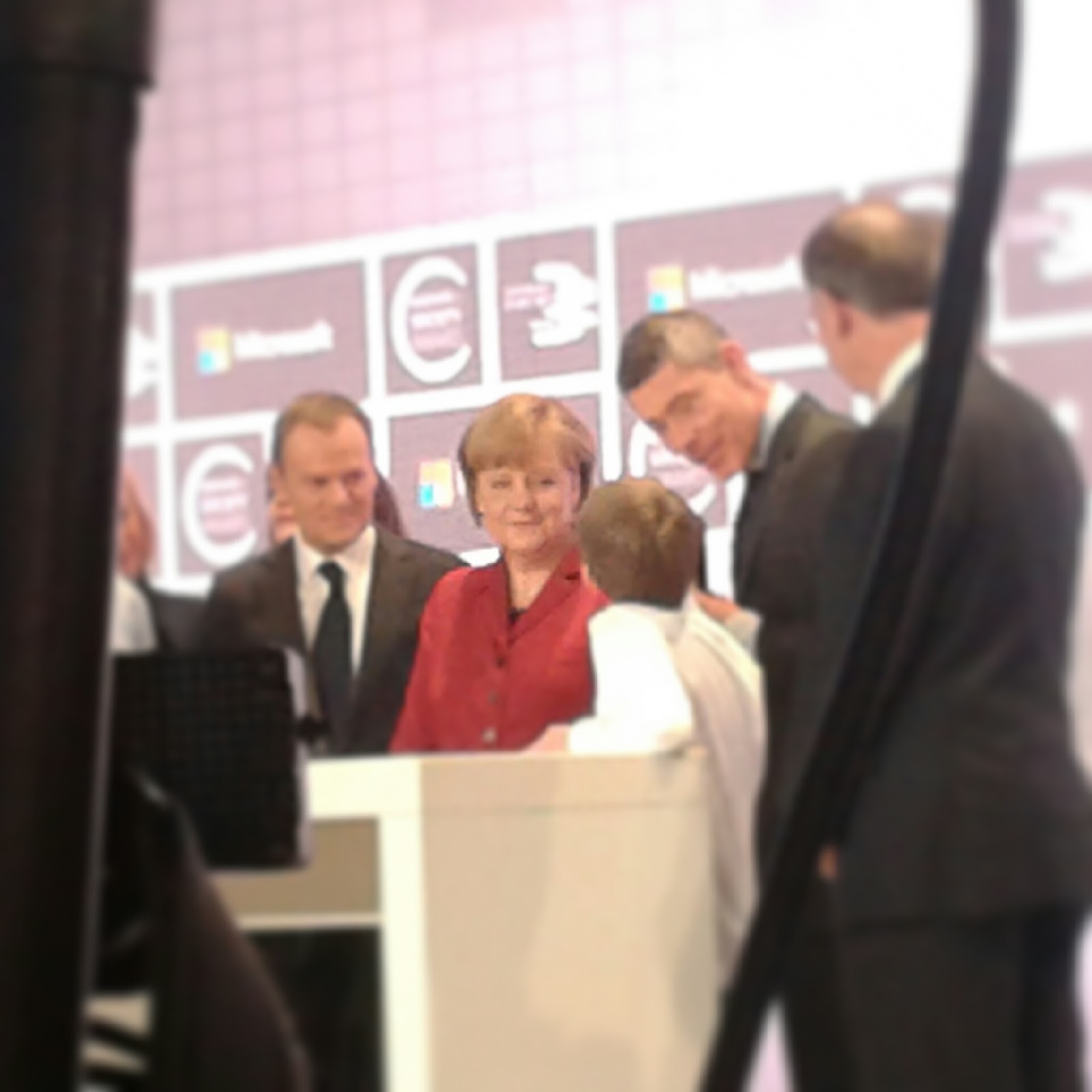 Felix Guttbier erklärt, als die Kanzlerin zum nächsten Messestand eilt, was seine Programme genau machen.