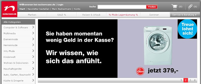 Der Online-Versandhändler Neckermann ist insolvent. Doch statt aufzugeben, macht der Anbieter sich selbst darüber lustig. Was herauskommt ist geniale Online-Werbung.