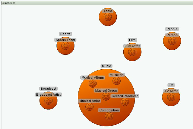 Was nun fehle, meint der Ingenieur, sei die richtige bildliche Umsetzung der Informationen und der Suchergebnisse. Und das habe man mit SemaSearch umgesetzt: Der Nutzer kann hier jetzt zwischen diversen Darstellungen auswählen. Beispielsweise Kreisen und Kerne. Das Prinzip ist einfach. Überbegriffe, wie Musik, Militär oder Ausbildung, kennzeichnen die Kreise. Kerne im selben Kreis zeigen einen inhaltlichen Zusammenhang auf. Was zusammengehört steht außerdem nahe beieinander.